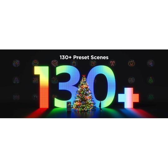 Govee Vianočný svetelný reťazec ponúka viac než 130 prednastavených svetelných scén, ktoré sú perfektné pre vianočné obdobie aj ďalšie festivaly počas roka. Tieto scénické režimy zahŕňajú pestrú škálu efektov, od tradičných a útulných atmosfér po živé a energické farebné kombinácie, ktoré dokážu oživiť akúkoľvek oslavu. Či už oslavujete Vianoce, Nový rok, Halloween alebo iné špeciálne príležitosti, vždy nájdete tú pravú scénu, ktorá dokonale ladí s vašou náladou a témou udalosti. S týmito bohatými možnosťami prispôsobenia sa váš priestor stáva centrom zábavy a radosti pre rodinu a priateľov.