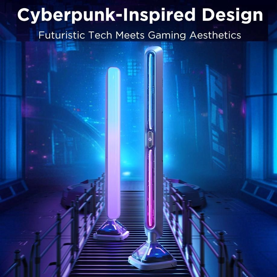 Dizajn svetelných panelov je inšpirovaný svetom kyberpunku, kde sa futuristická technológia dokonale snúbi s estetikou hier. Moderný dizajn, súčasné línie, neónové farby a dynamické osvetlenie vytvárajú vizuálne pôsobivý vzhľad, ktorý premení akýkoľvek herný alebo multimediálny priestor na ultramoderné prostredie.