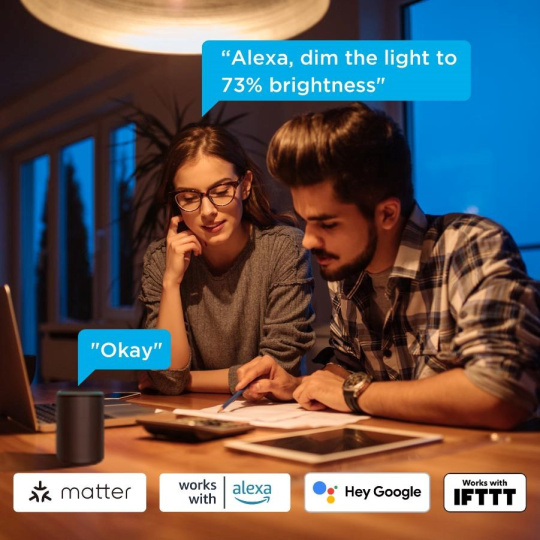 Aplikácia Govee je ideálny nástroj na ovládanie vašich zariadení Govee. Obsahuje nástroje na úplné ovládanie, výber scény, automatizáciu a časovače. Ak uprednostňujete Google Home, nie je to problém. Govee je plne kompatibilný. Hlasové ovládanie je možné prostredníctvom asistentov Google, Alexa a Siri. Vďaka protokolu Matter môžete žiarovku pripojiť aj natívne k Homekit alebo iným domácim systémom. Teraz je podporovaný aj protokol IFTTT.