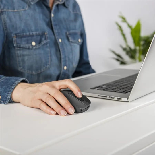 - bezdrôtová 7-tlačidlová myš s vysokou presnosťou pohybu na prakticky každom povrchu - tiché hlavné tlačidlá umožňujú nerušenú prácu bez akéhokoľvek rušivého klikania - DPI tlačidlo pre zmenu rozlíšenia (600/1200/1600/3200) - 4-smerové rolovacie koliesko pre vertikálne aj horizontálne rolovanie - samostatné ON/OFF tlačidlo - inteligentné riadenie spotreby energie aktivuje Standby režim, ak myš nepoužívate - ergonomický tvar pasuje výborne do pravej ruky - softvér na preprogramovanie tlačidiel - Browser tlačidlá s funkciou vpred/vzad na internete - 2,4 GHz technológia pre spoľahlivý a nerušený prenos signálu - USB prijímač sa dá prenášať v tele myšky - LED indikácia vybitých batérií Systémové požiadavky - operačný systém: Windows 1/10/8/7/Vista/XP, Mac OS 10.10 alebo vyššie Technické parametre: - pripojenie: USB A vidlica - rozlíšenie: 600/1200/1600/3200 DPI - počet tlačidiel: 7 - rolovacie koliesko - napájanie: 2x AA batéria - rozmery: 6,7 x 10,7 x 3,7 cm - hmotnosť: 138 g Obsah balenia: - laserová bezdrôtová myš - USB prijímač - 2x batérie AAA - návod na použitie.