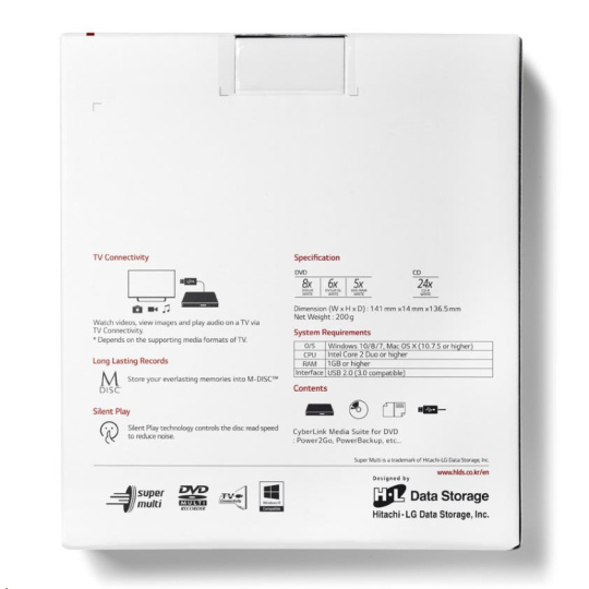 HITACHI LG - externá mechanika DVD-W/CD-RW/DVD±R/±RW/RAM GP57ES40, Slim, Silver, box+SW