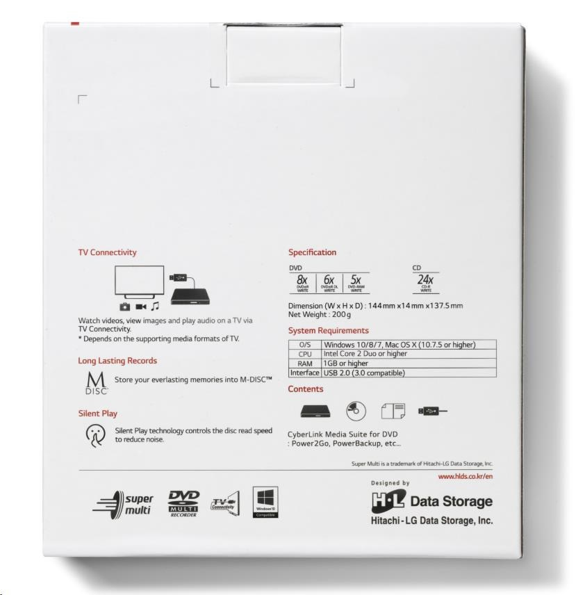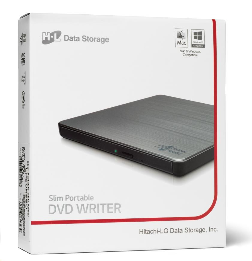 HITACHI LG - externá mechanika DVD-W/CD-RW/DVD±R/±RW/RAM GP60NS60, Slim, Silver, box+SW