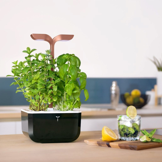 Véritable Exky SMART - Automatický květináč s regulací osvětlení, černá měděná + 2 bylinkové náplně