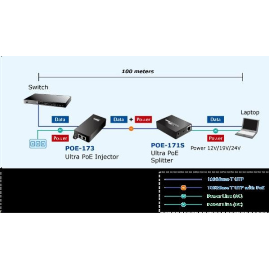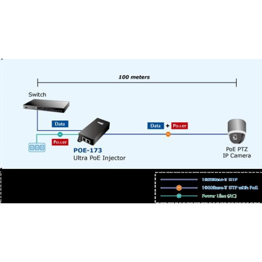 Planet POE-173 Ultra Poe injektor napájení po ethernetu IEEE802.3at/af, 60W, Gigabit