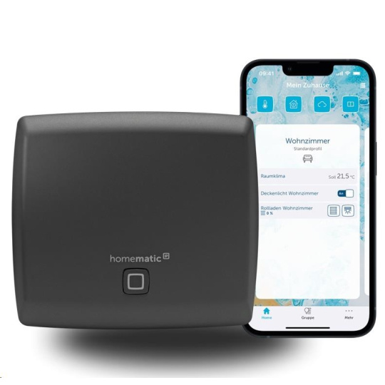 Pôsobí ako prístupový bod a ponúka pohodlné nastavenie a ovládanie komplexného systému chytré domácnosti Homematic IP pomocou intuitívnej aplikácie (pre Android a iOS v CZ) určené pre chytré telefóny a tablety. Mobilná aplikácia umožňuje okamžitú reakciu na správy a upozornenia zo systému vašej chytré domácnosti a spája všetky zariadenia Homematic IP prostredníctvom bezplatného neobmedzeného cloudu, ktorý umožňuje nastavenie a riadenie systému odkiaľkoľvek na svete, prenos dôležitých informácií a aktualizáciu softvéru a firmvéru zariadení, odovzdáva konfiguračné a prevádzkové príkazy z aplikácie Homematic IP smerom ku jednotlivým zariadeniam chytré domácnosti.