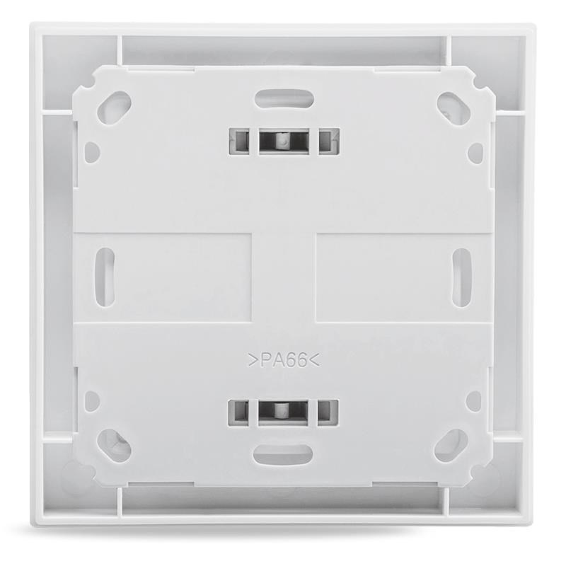 Plochý Nástenný diaľkový ovládač (HmIP-WRC2) ponúka možnosti flexibilnej inštalácie a širokú modularitu využitia v klasickom prevedení, ktoré zvládne viacero úloh súčasne. Stlačením jedného zo dvoch tlačidiel poskytuje ovládač pestrú škálu riešení od jednoduchých príkazov po zložité scénáre riadenia inteligentnej domácnosti. Vďaka batériovému prevádzke je možné tlačidlo nenápadne voľne umiestniť alebo nainštalovať na požadované miesto.
