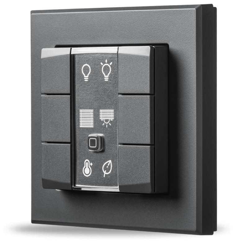 Programovateľný bezdrôtový Nástenný diaľkový ovládač v antracitovej farbe (HmIP-WRC6-A) je súčasťou systému inteligentnej domácnosti Homematic IP.