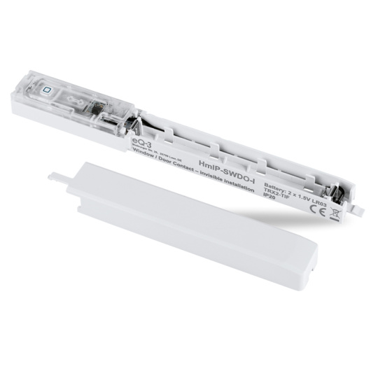 Bezdrôtový optický Okenný a dverný senzor - optický plus, skrytá montáž (HmIP-SWDO-I), určený na použitie v vnútorných priestoroch, je súčasťou systému chytrej domácnosti Homematic IP. Môže byť použitý na spoľahlivú ochranu všetkých typov okien a dverí prostredníctvom optickej technológie na princípe infračerveného svetelného bariérového systému s konštrukciou na skrytú montáž a s extra dlhou životnosťou batérií.