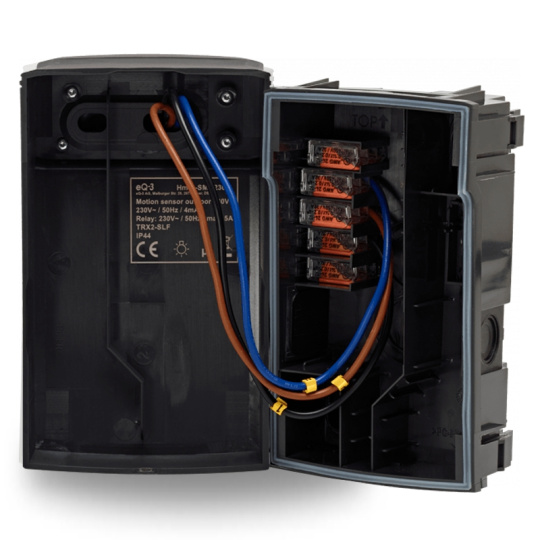 Vďaka širokému teplotnému rozsahu od -20 do +55 °C a krytu odolnému voči poveternostným podmienkam (IP44) je možné detektor pohybu bez obáv inštalovať vonku alebo napríklad v garážach. Pre optimálny dosah detekcie sa odporúča inštalačná výška 2,5 m.