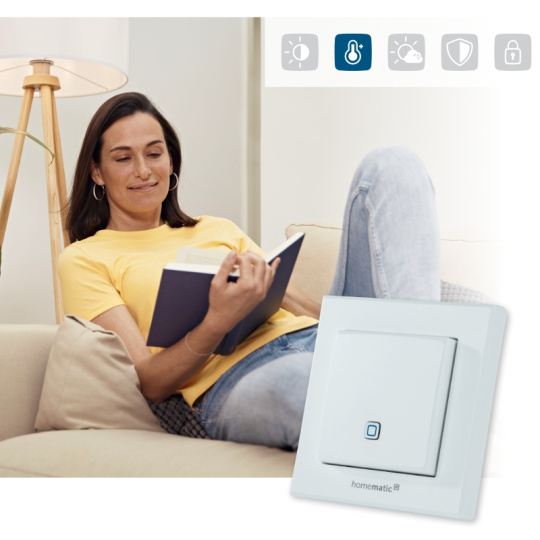 Bezdrôtový nástenný Senzor teploty a vlhkosti (HmIP-STH) určený pre vnútorné inštalácie predstavuje inteligentný spôsob na reguláciu vykurovania a úsporu energií.