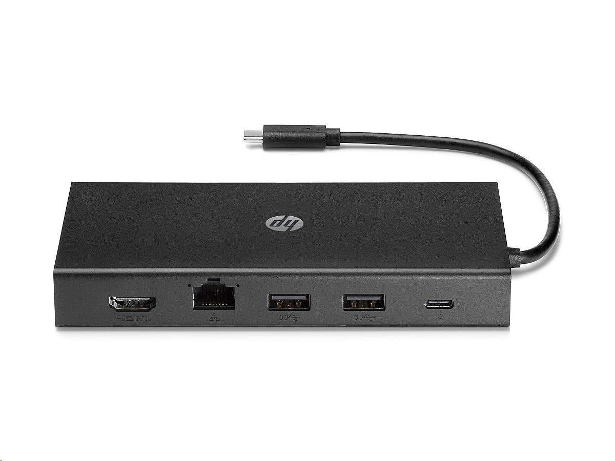 HP Travel USB-C Multi Port Hub • Umožňuje napájať vybrané notebooky s napájacím USB-C konektorom alebo USB-C s podporou Thunderbolt do 90 W. • Pre pripojenie externého monitora musí USB-C port notebooku podporovať prenos obrazu. • K replikátoru portov možno pripojiť iba jeden externý monitor. • Súčasťou balenia nie je napájací adaptér typu USB-C (odporúčaný 90 W). Porty a konektory 1x USB-C (pre externé zariadenia alebo napájanie notebooku) 2x USB 3.0 2x USB 2.0 1x HDMI 2.0 (4K @30Hz) 1x VGA 1x čítačka micro SD kariet 1x čítačka SD kariet 1x port pre slúchadlá 1x RJ-45 (Gigabit LAN).