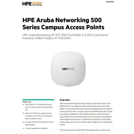Odkaz na web výrobce: https://www.arubanetworks.com/assets/ds/DS_AP500Series.pdf