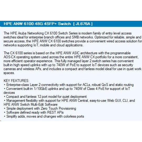 HPE Aruba Networking CX 6100 48G 4SFP+ Switch.