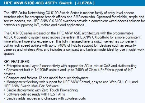HPE Aruba Networking CX 6100 48G 4SFP+ Switch.