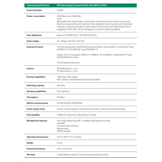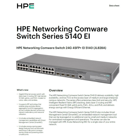 HPE Networking Comware 5140 24G 4SFP+ EI Switch JL828AR RENEW