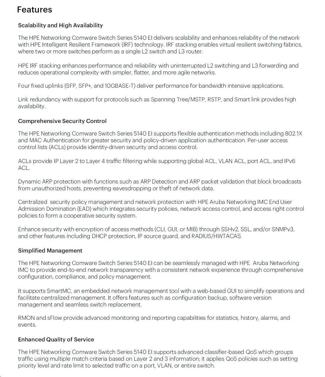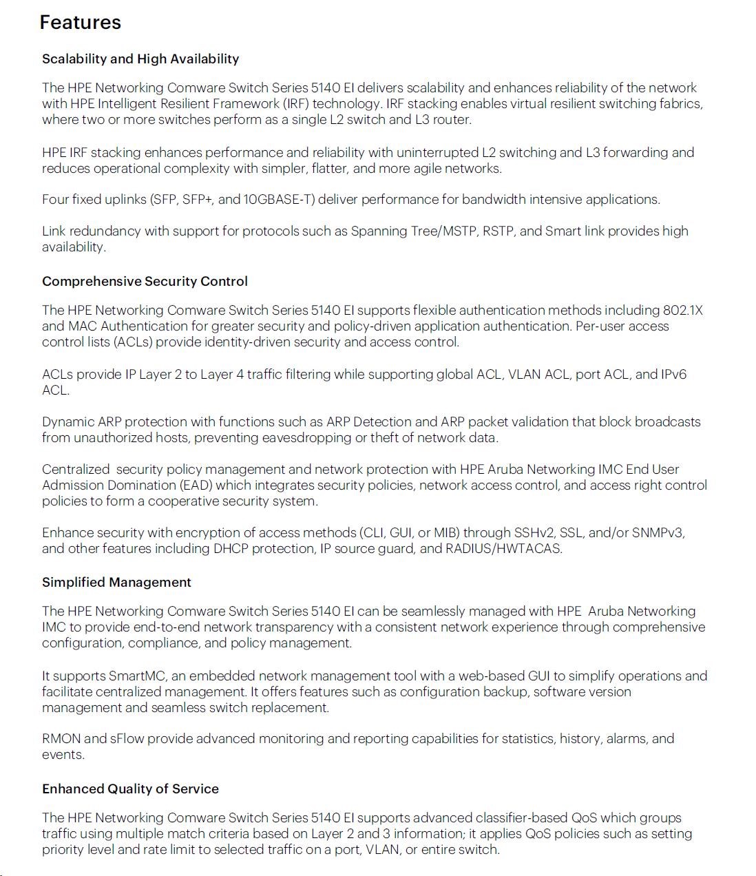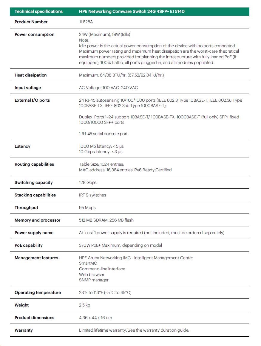 HPE Networking Comware 5140 24G 4SFP+ EI Switch JL828AR RENEW