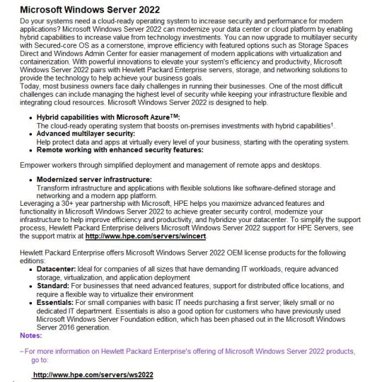 HPE Windows Server 2022 Datacenter Edition ROK 16Core No Reassignment Rights CZ EN PL RU SV