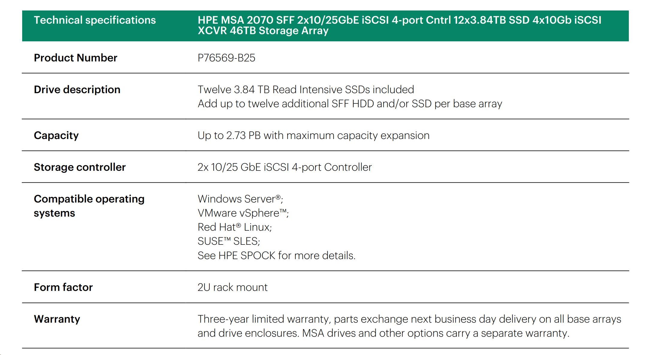 HPE MSA 2060 SFF 2x16Gb FC 4p Array.