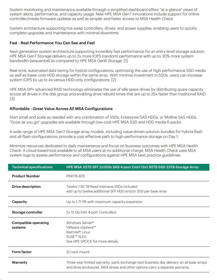 HPE MSA 2070 SFF 2x12Gb SAS 4p Array.