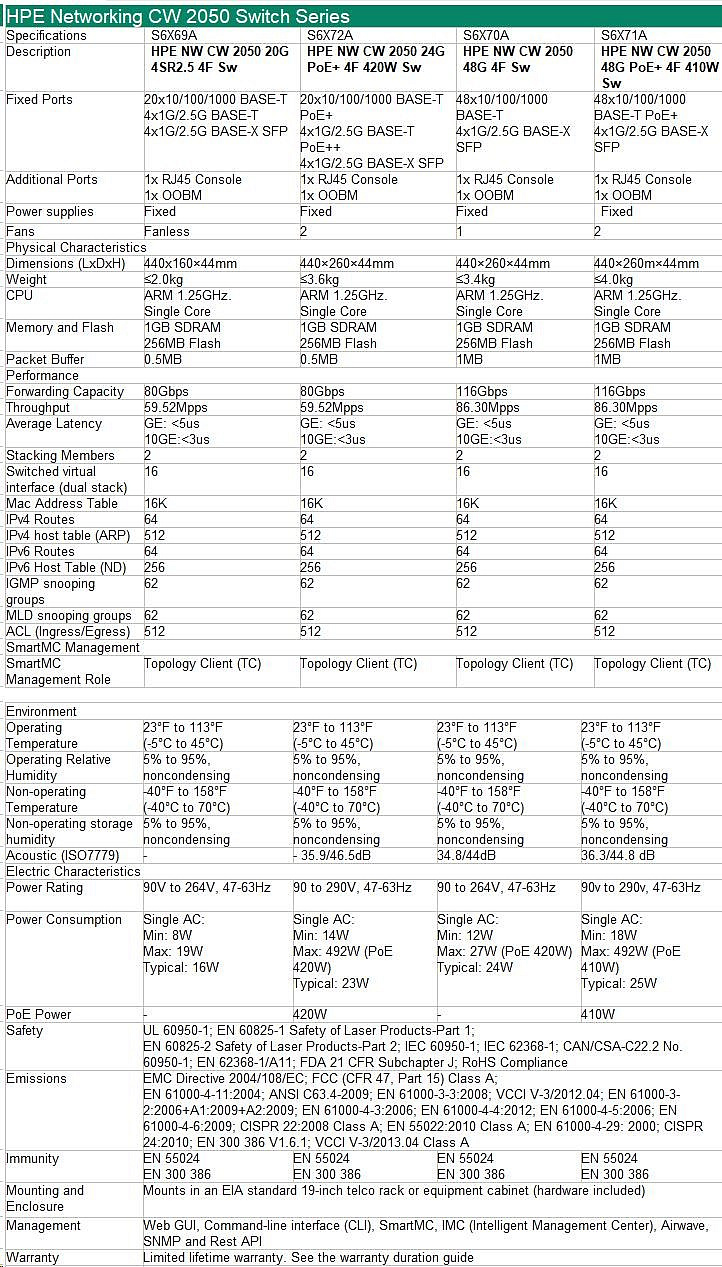 HPE Networking CW 2050 48p 10/100/1000BASE-T 4p SFP 1G/2.5G Switch