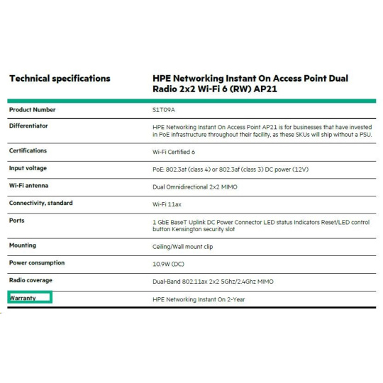 Differentiator HPE Networking Instant On Access Point AP21 is for businesses that have invested in PoE infrastructure throughout their facility, as these SKUs will ship without a PSU.
