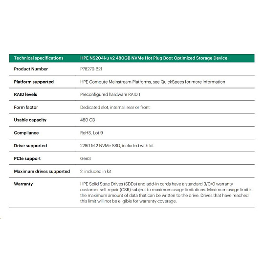 HPE NS204i-u v2 480GB NVMe Hot Plug Boot Optimized Storage Device P78279-B21 RENEW.