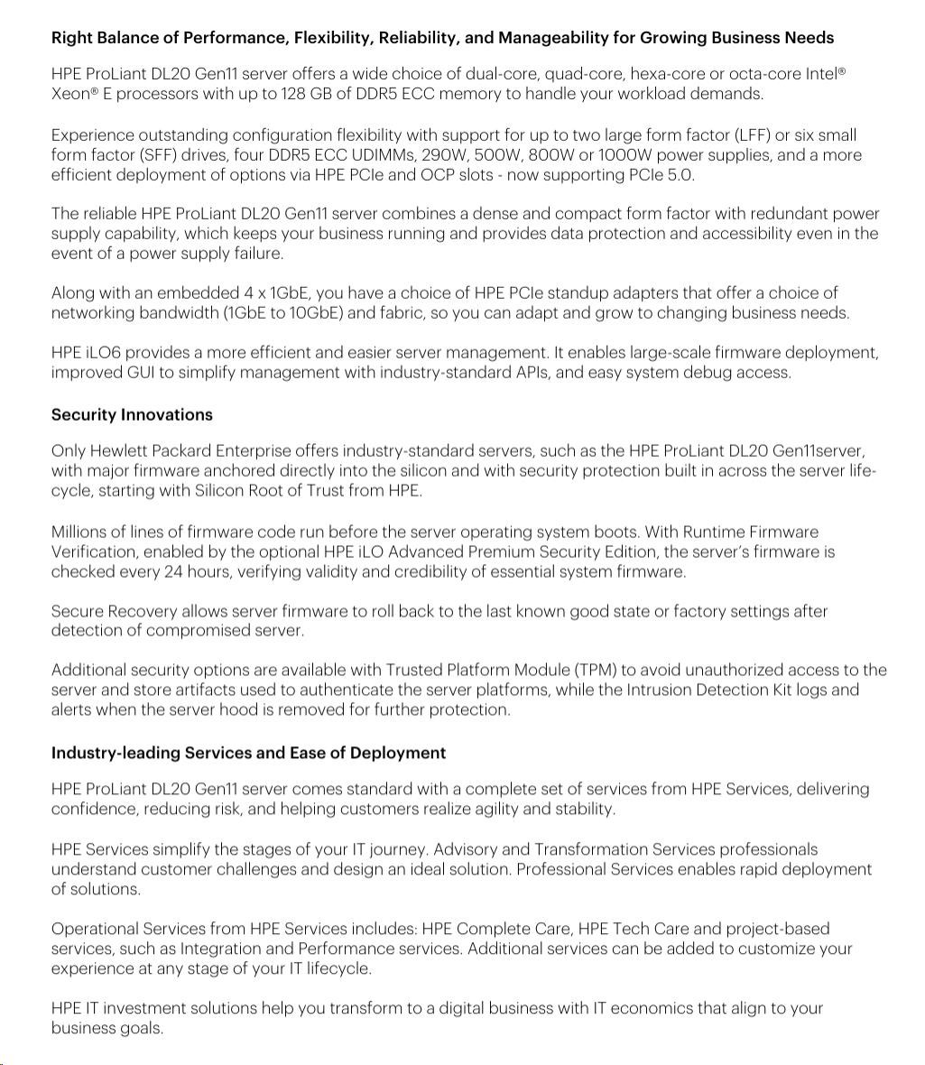 HPE PL DL20 gen11 6333P (3.1G/6C12T) 1x32G 4SFF 2x480GB VROC 1x1000W 4x1G NBD333 Smart Choice.