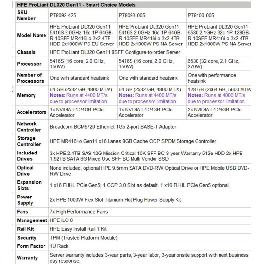 | HPE ProLiant DL320 Gen11 - Smart Choice Models | |