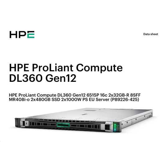 HPE PL DL360 Gen12 6515P (2.4/16C) 2x32G (P69727) 2x480G MR408i-o 8SFF 2x1000W 10GbE NBD333 Smart Choice