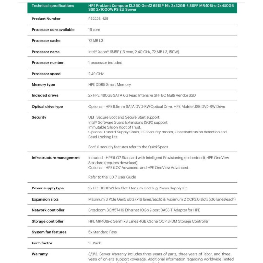- Included: HPE iLO 7 Standard, Intelligent Provisioning, HPE OneView Standard