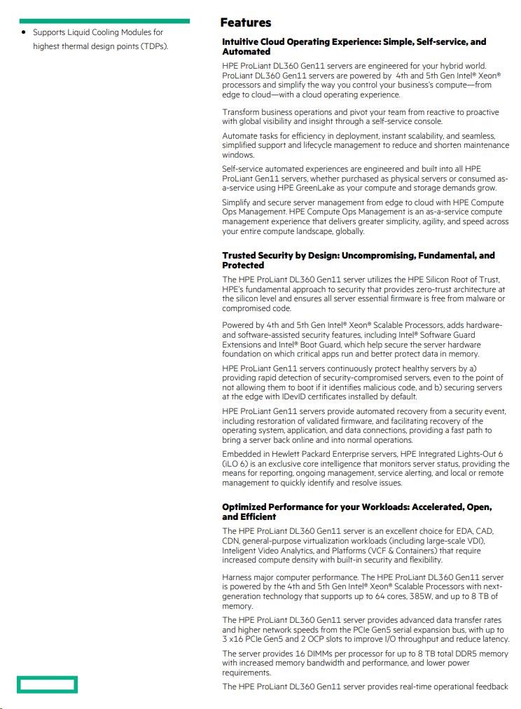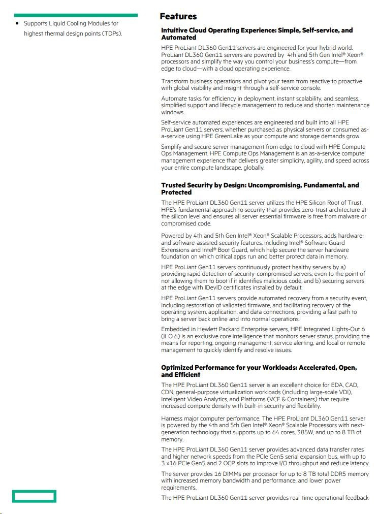 | Chassis | HPE ProLiant DL360 Gen11 8SFF NC Configure-to-order Server |