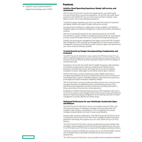 | Rail Kit | HPE ProLiant DL3XX Gen11 Easy Install Rail 3 Kit Notes: Server does not support shelf mounted rail kits ("L" brackets). |