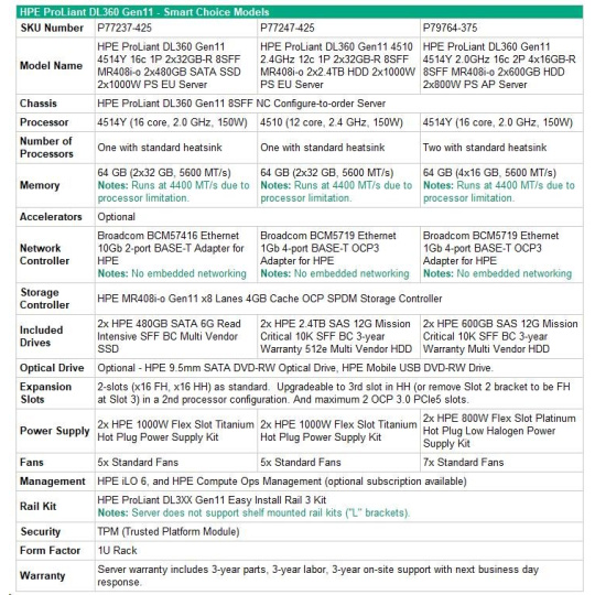 HPE PL DL360g11 4514Y (2.0G/16C) 2x32G (p64706) 2x480G 2x1000W MR408i-o 8SFF 2x10G-T Smart Choice