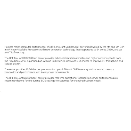 Model Name HPE ProLiant DL360 Gen11 5415+ 2.9GHz 8-core 1P 32GB-R NC 8SFF 800W PS Server