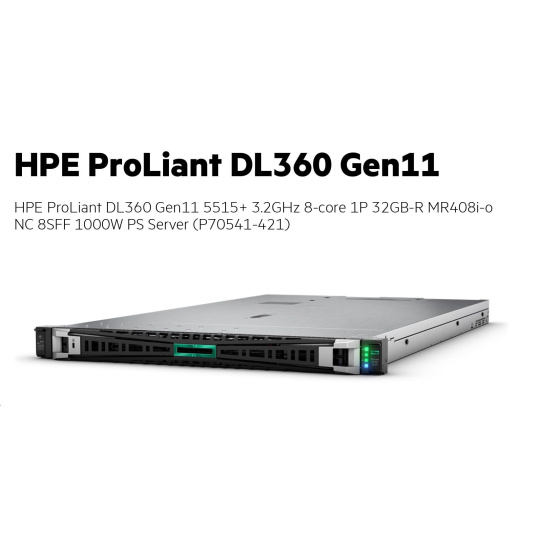 | Model Name | HPE ProLiant DL360 Gen11 5515+ 3.2GHz 8-core 1P 32GB-R MR408i-o NC 8SFF 1000W PS Server |