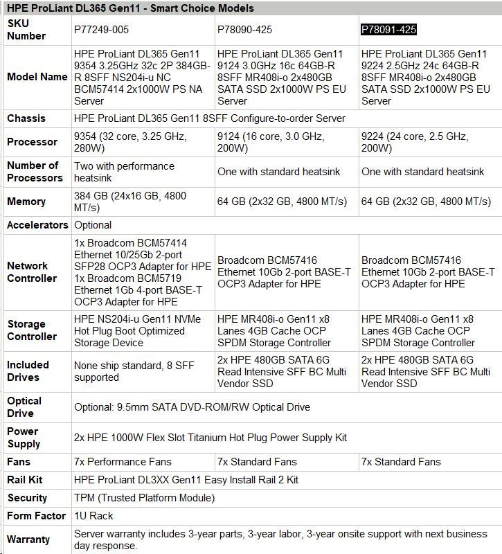 HPE PL DL365g11 AMD Epyc 9224 (2.5/24C) 2x32G 2x480G MR408i-o/4G ocp2p10G-T 8SFF 2x1000W 1U Smart Choice.