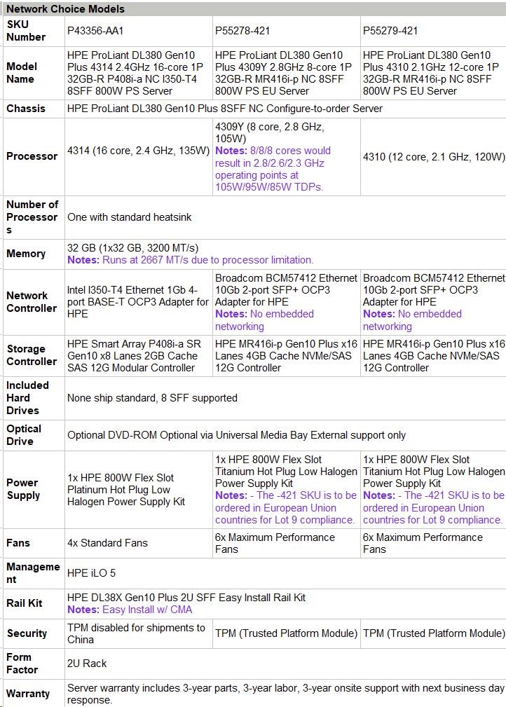 | Network Controller | Broadcom BCM57412 Ethernet 10Gb 2-port SFP+ OCP3 Adapter for HPE Notes: No embedded networking |