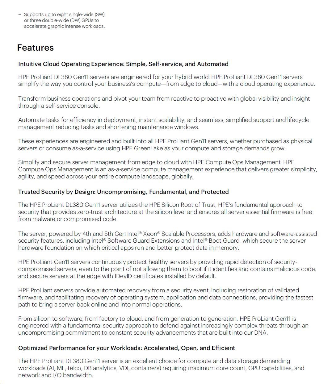 HPE PL DL380g11 4510 (2.4G/12C) 2x32G (p64706) 1x7.68TB NVMe 2x1000W 8SFF 4p1G Smart Choice.