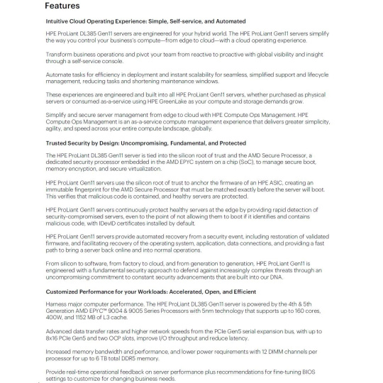 HPE PL DL385g11 AMD EPYC 9115 (2.6/16C) 2x32G (P64985) 1x7.68TB NVMe 2x1000W 8SFF 2p10GT Smart Choice.