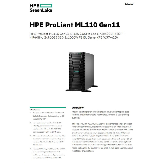 | HPE ProLiant ML110 Gen11 - Smart Choice Models | |