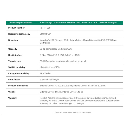 HPE Storage LTO-8 Ultrium External Tape Drive 5x LTO-8 30TB Data Cartridges.