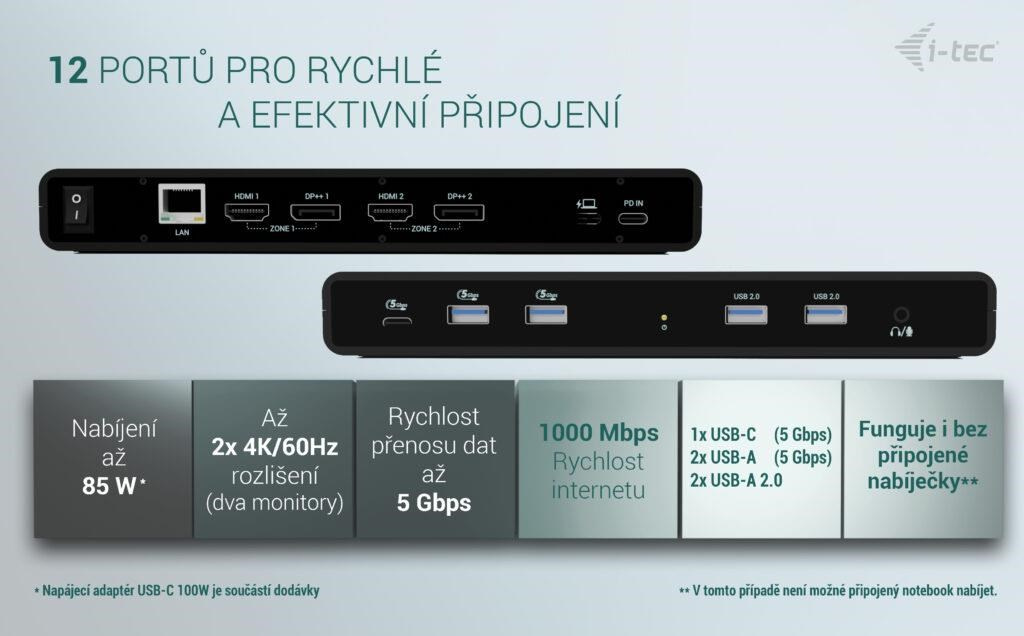 i-tec Univerzálna Dual 4K Display Docking Station + Power Delivery 85W