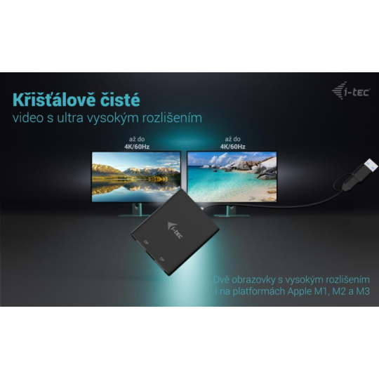 i-tec USB-A/USB-C Dual 4K/60 Hz DisplayPort Video adaptér