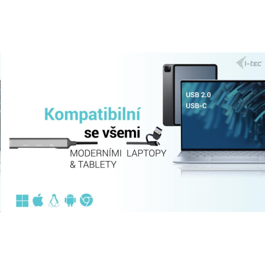 • HUB podporuje všetky bežné súčasné operačné systémy (Windows, macOS, Linux, Android, Chrome OS, iPadOS).