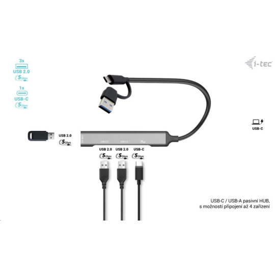 i-tec USB-A/USB-C Metal HUB 1x USB-C 3.1 + 3x USB 2.0