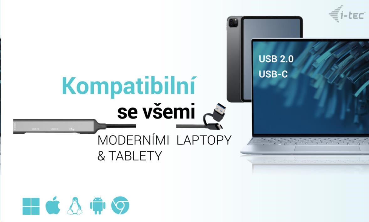 • HUB podporuje všetky bežné súčasné operačné systémy (Windows, macOS, Linux, Android, Chrome OS, iPadOS).