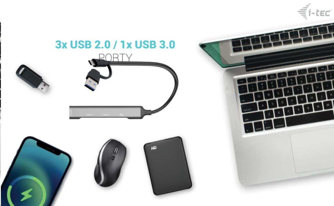 i-tec USB-A/USB-C Metal HUB 1x USB-C 3.1 + 3x USB 2.0
