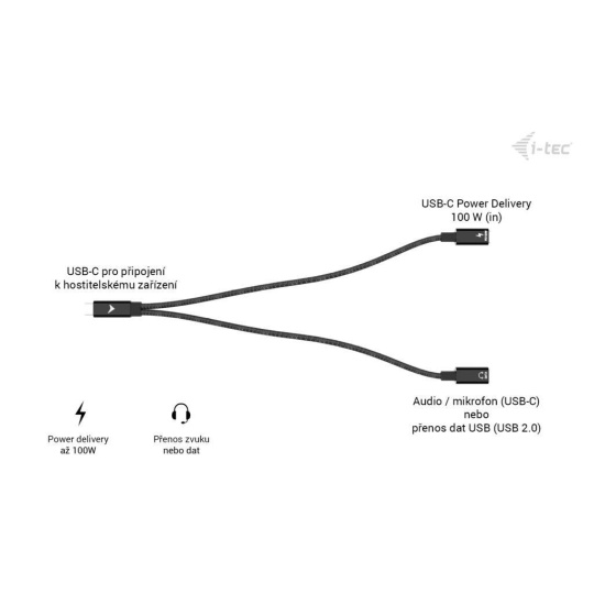 i-tec USB-C Kábel Splitter Audio/Data + Power Delivery 100W