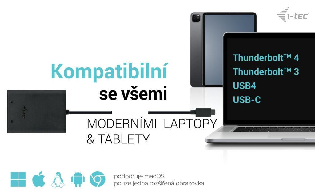 i-tec USB-C Dual 4K/60Hz (single 8K/30Hz) DP Video Adapter