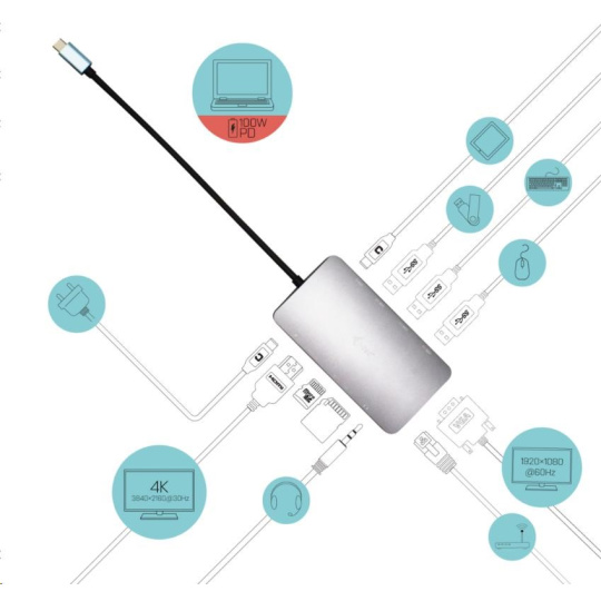 i-tec USB-C Metal Nano Dock HDMI/VGA s LAN + Nabíjačka 100W
